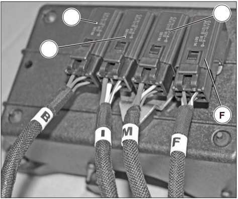 Mounted on the right side of the battery compartment, marked with the letter “F”.